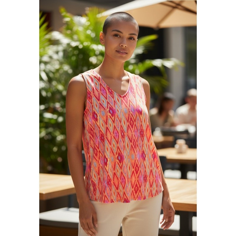 Dear Scarlett – Elevate your wardrobe with this stunning Dear Scarlett Geometric Diamond Sleeveless Tank Top! Perfect for adding a touch of sophisticated flair to any outfit. This beautiful piece features a captivating geometric diamond pattern that truly stands out. Crafted with comfort and style in mind, it's ideal for layering or wearing on its own during warmer days. The sleeveless design makes it incredibly versatile, suitable for both casual outings and more dressed-up occasions. It's a fantastic addition to your collection, offering both eye-catching design and effortless wearability. Don't miss out on the chance to own this charming and chic top! 94% Polyester 6% Spandex