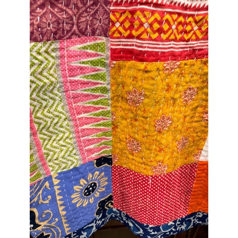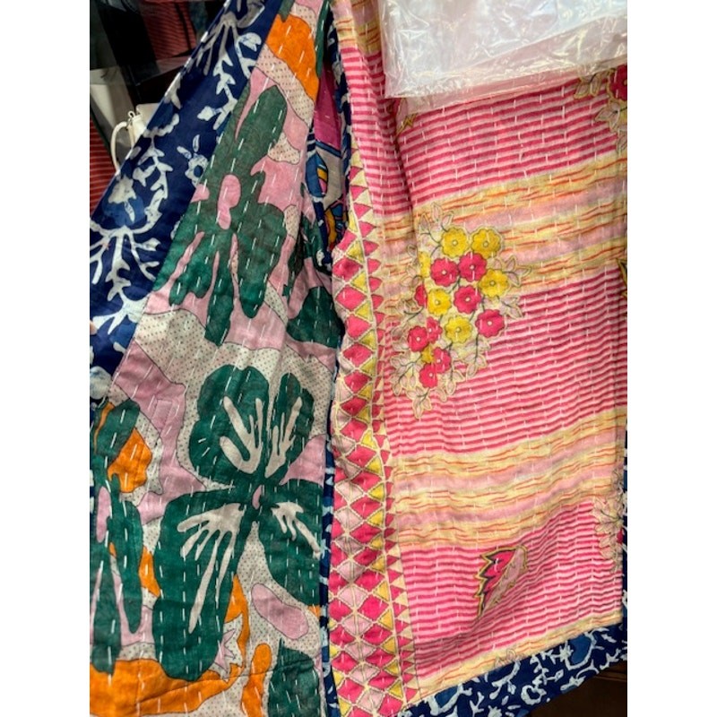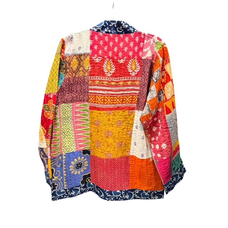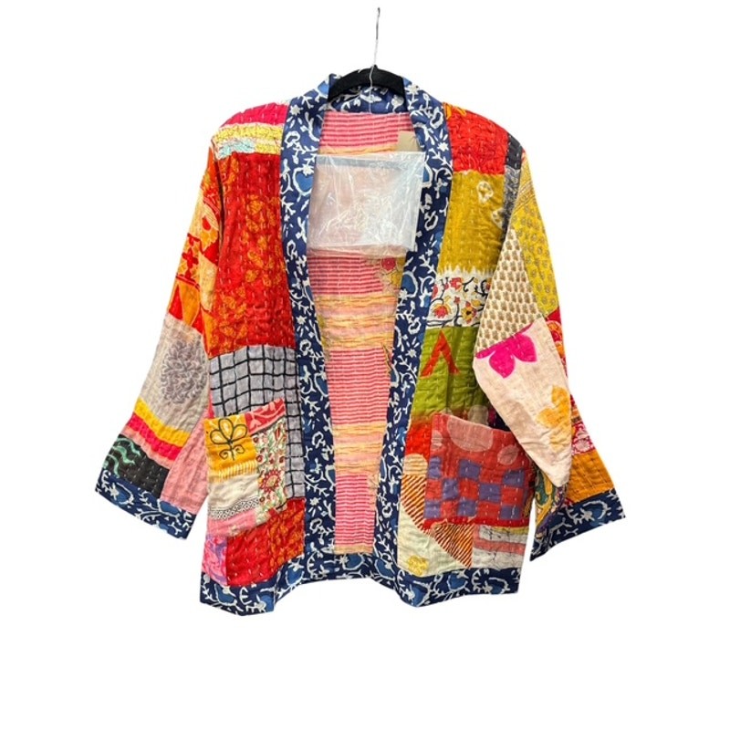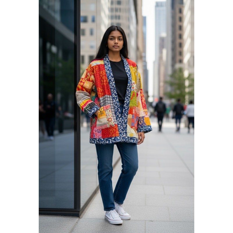 Discover the unique charm of this beautiful Sevya Handmade Kantha Reversible Jacket! This stunning piece is truly one-of-a-kind, showcasing intricate Kantha stitching that tells a story with every thread. It's a fantastic addition to any wardrobe, offering versatility and style. This jacket is perfect for adding a bohemian touch to any outfit. It's lightweight enough for a cool evening but also provides a nice layer of warmth when needed. A wonderful choice for those who appreciate artisan craftsmanship and sustainable fashion. The vibrant patterns and colors are sure to brighten your day and draw compliments. It's incredibly easy to care for and maintain, making it a practical choice for everyday wear. The 'One Size' fit is designed to comfortably drape on a variety of body types, ensuring a relaxed and fashionable silhouette. Perfect for layering over a simple tee or dress, this jacket adds a touch of artisanal elegance to your everyday ensemble. Whether you're heading out for a casual brunch or just enjoying a cozy evening, this Kantha jacket will keep you looking effortlessly chic and feeling wonderful. Embrace handcrafted beauty and make a statement with this amazing jacket! Upcycle Saris Cotton