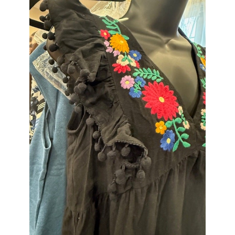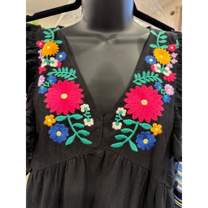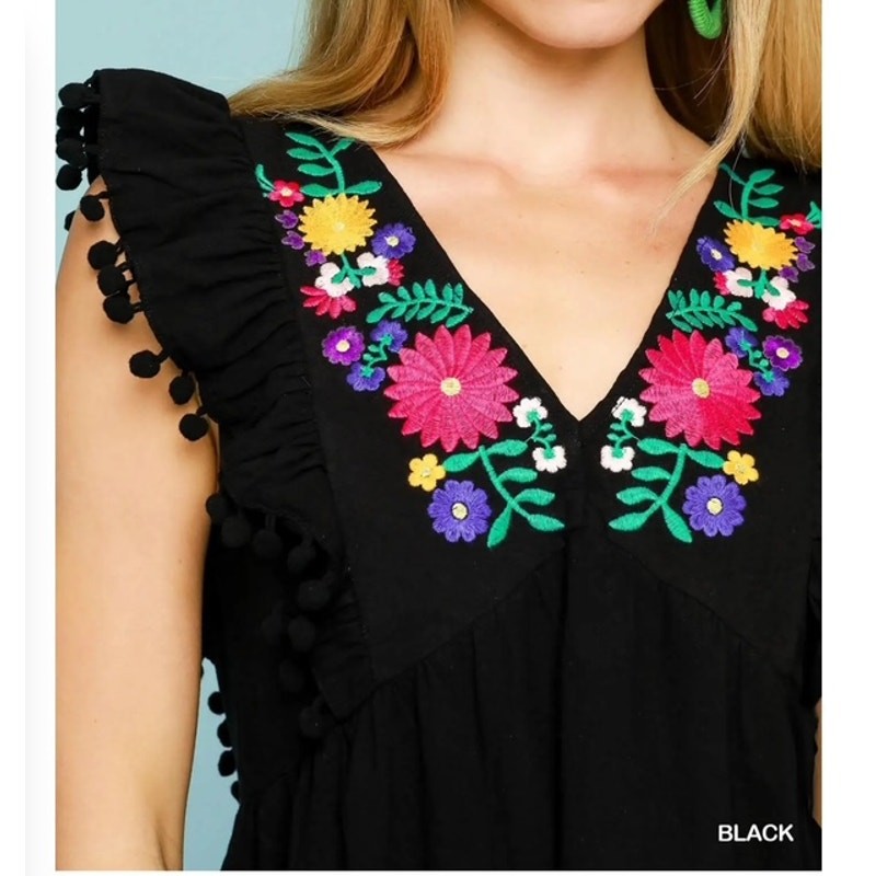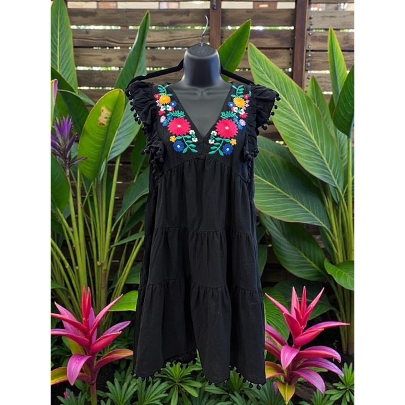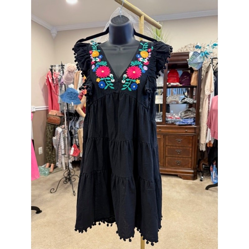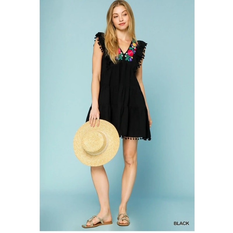 This beautiful UMGEE dress is perfect for any occasion! The intricate embroidery and playful pom pom trim add a touch of whimsy, while the ruffle hem gives it a feminine flair. Made from high-quality materials, this dress is comfortable and durable. It's perfect for a day out or a special evening event. Don't miss out on the chance to own this unique and stylish dress! It's sure to become a favorite in your wardrobe. 100% Cotton