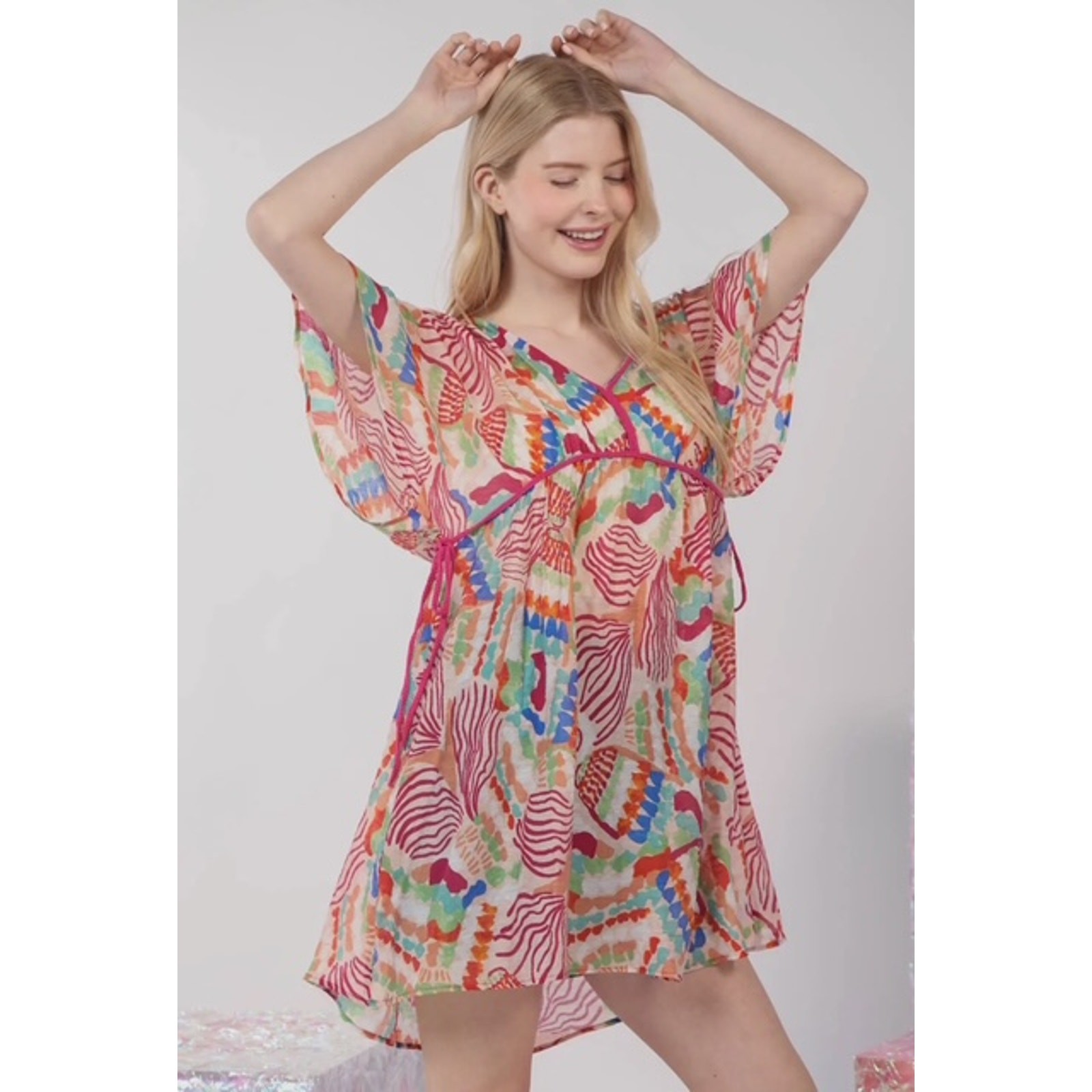 Very J – Multi Color Printed Coverup Mini Dress -V-Neck