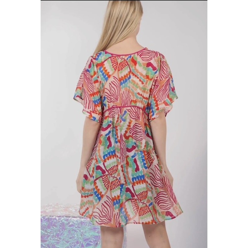 Very J – Multi Color Printed Coverup Mini Dress -V-Neck