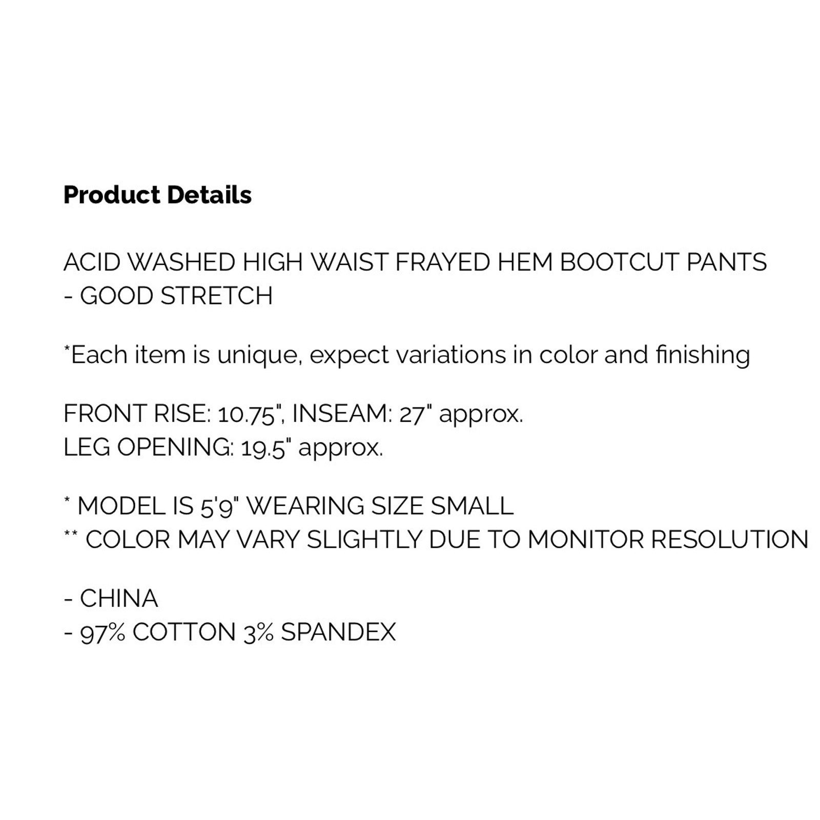 – 97% Cotton 3% Spandex
