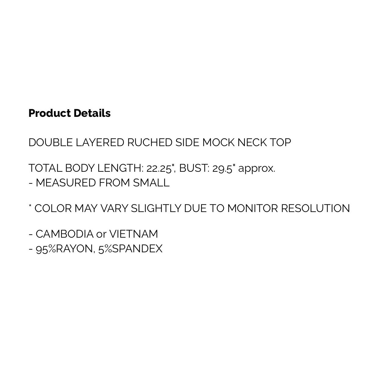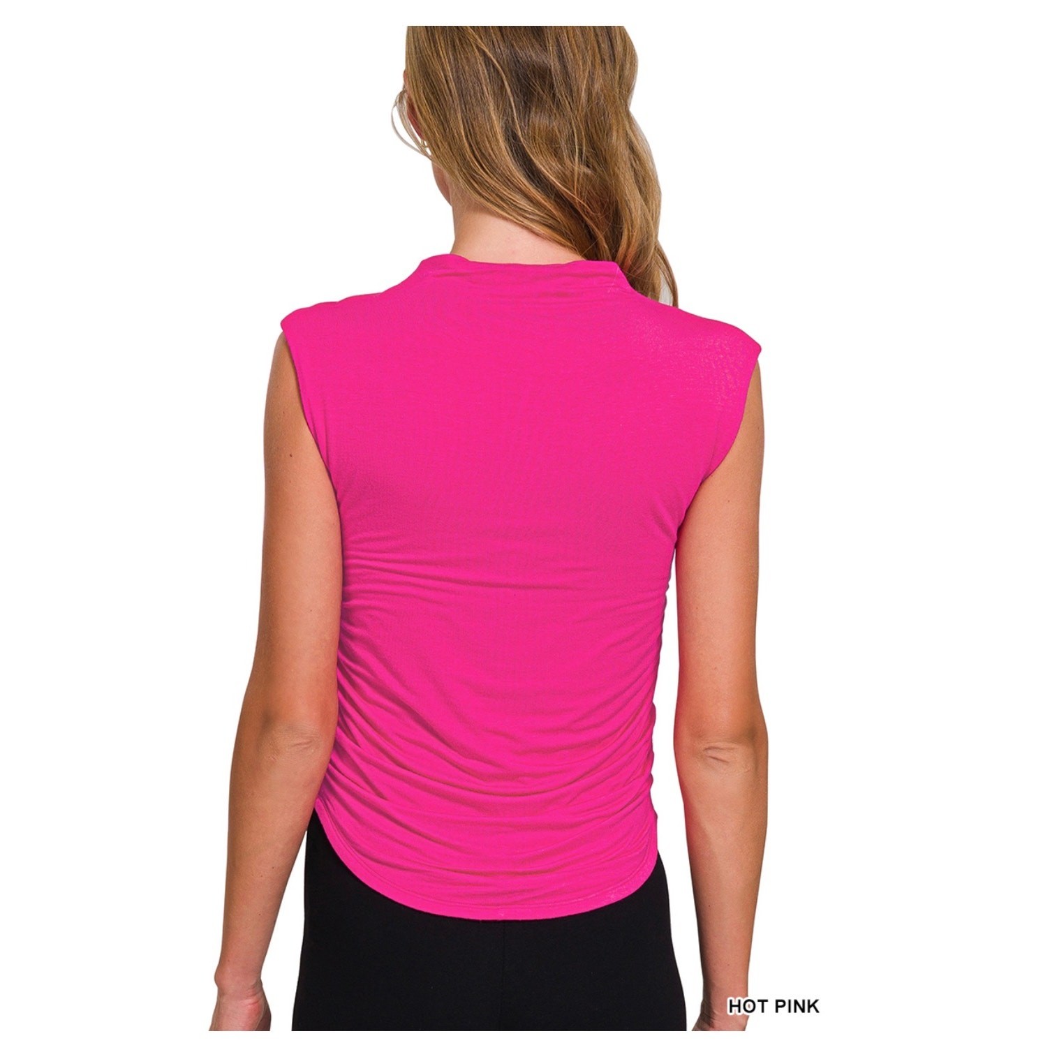 Zenana – Double Layered Ruched Side Mock Neck Top – Medium