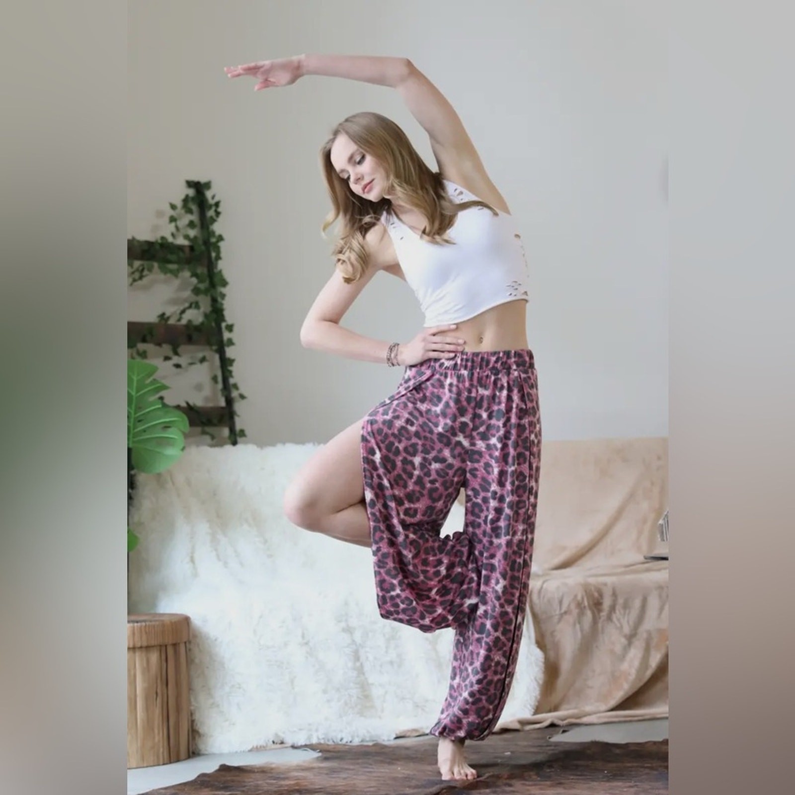Turn heads with this stunning cranberry leopard print side split pants. Perfect for a bold and stylish look. NWOT