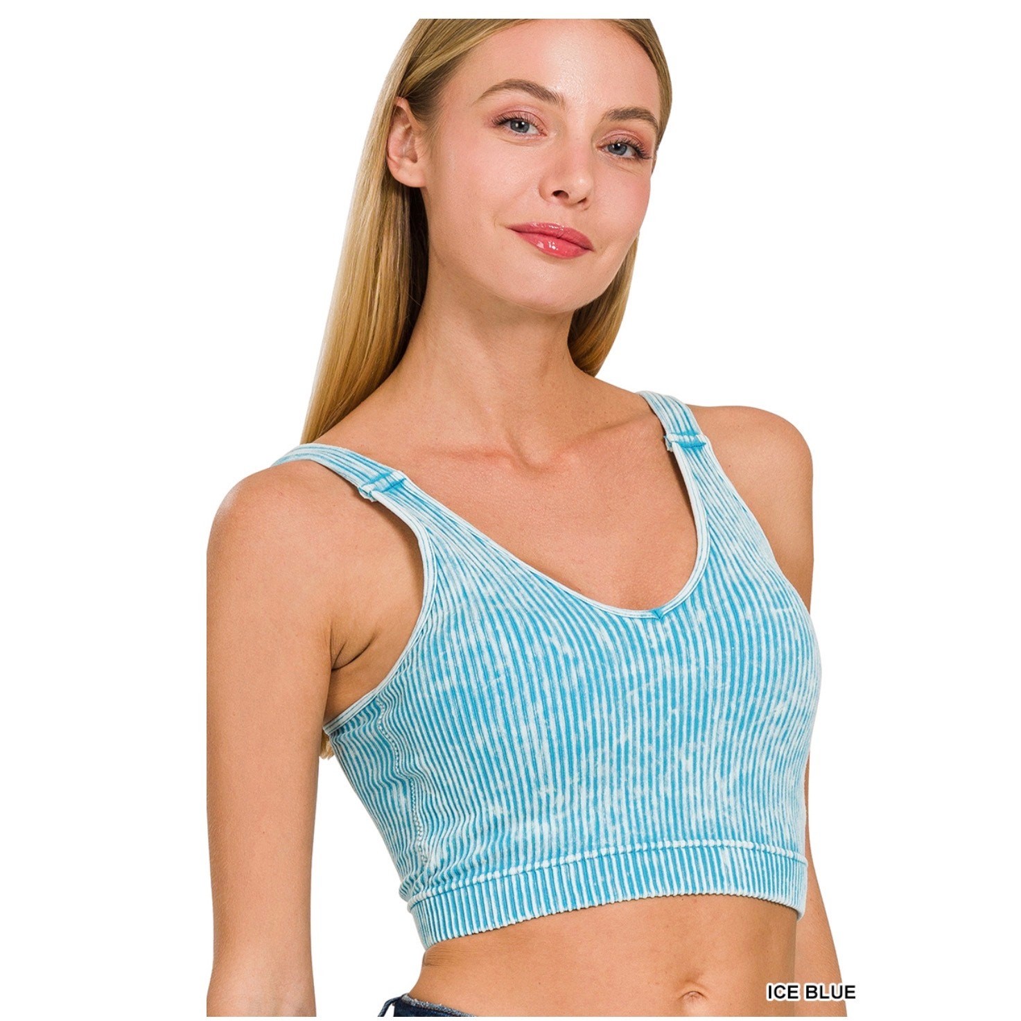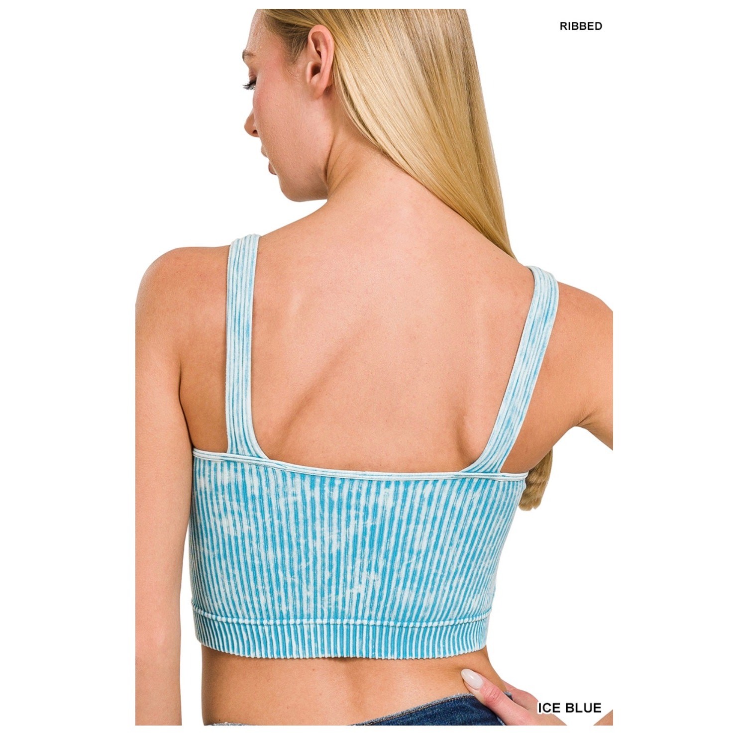 Zenana – Washed Ribbed Seamless Padded Brami – Ice Blue – S/M